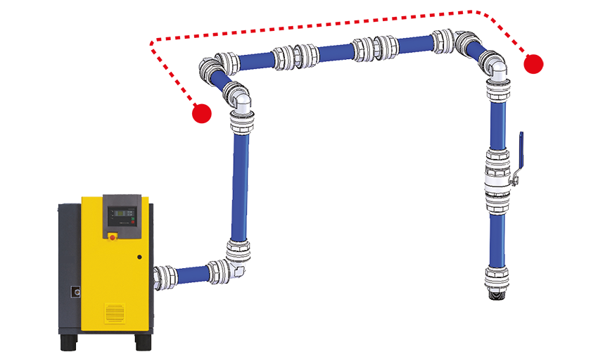 - Example - 42cfm compressor with a maximum pipework distance of 200 metres (to the furthest usage point) will require a 32mm pipework system.